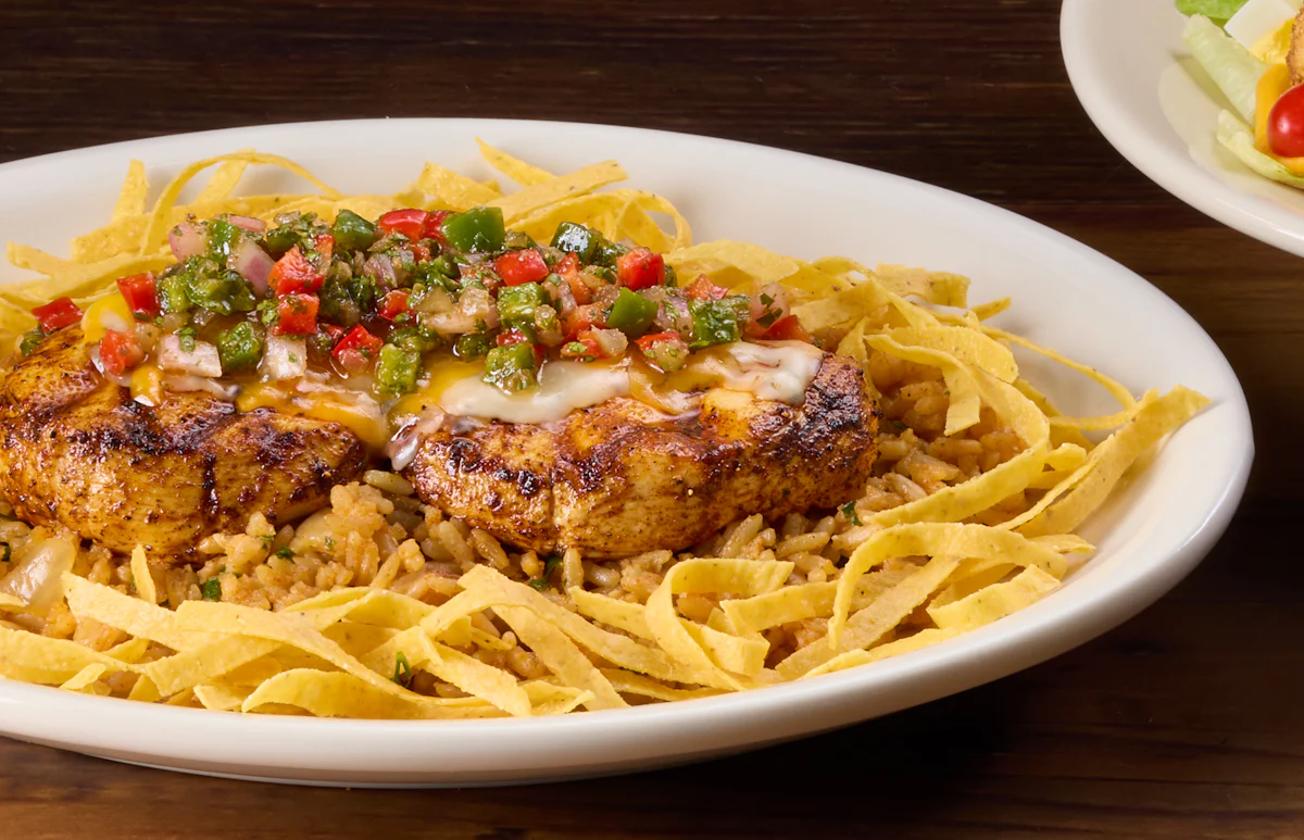 Cajun chicken breast topped with melted jack and cheddar cheeses, jalapeño relish, and served over seasoned rice